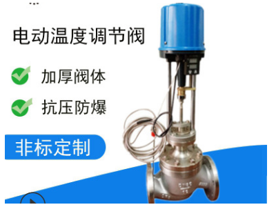 自力式电控温度调节阀(适用于较大口径及导热油控制),该阀最大的特点只需普通220V电源,利用被调介质自身能量,直接对蒸汽、热气、热油与气体等介质的温度实行自动调节和控制,亦可使用在防止对过热或热交换场合,该阀结构简单,操作方便,选用调温范围广、响应时间快、密封性能可靠,并可在运行中随意进行调节,因而广泛应用于化工、石油、食品、轻纺、宾馆与饭店等部门的热水供应